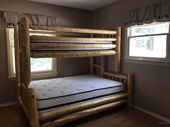 Rare chance to own a camp on pristine and private 365 acre/92 foot deep Monson Pond. Camp has 315 ft. of water frontage, a huge 2 vehicle garage with floored upstairs, another building which can be a storage area or bunk house for overflow company AND across the water there is a primitive camp included with breathtaking sunset views and additional sleeping for those that want to rough it! The camp across the pond was the first camp built on Monson Pond on the west side. It has room for 2 to 4 overnight guests and views to die for.