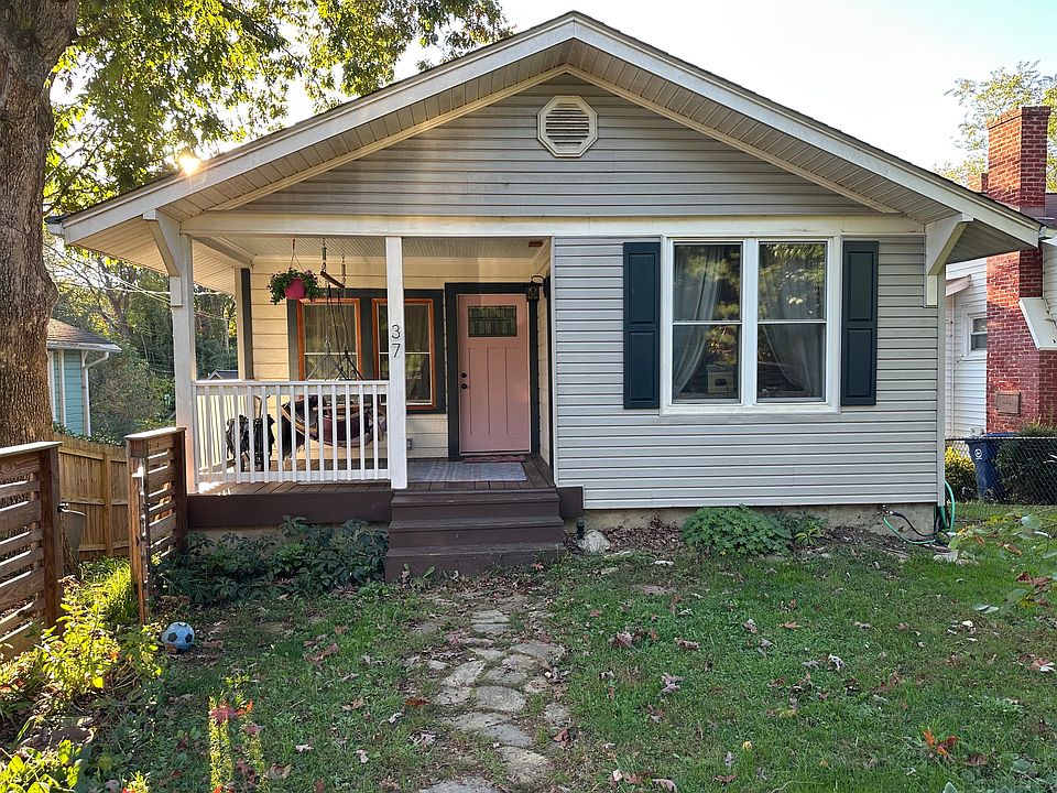 We are renting out our sweet 2BR/1BA bungalow just 1.5 blocks off of Haywood Rd in West Asheville, on a quiet, neighborhood street. It is just 7 min to downtown Asheville and 10 min to Mission Hospital. We are asking $2,000/mo, but water and high-speed internet are included, which are a combined average monthly value of $175, making the rental itself $1,825. We have lived here for the last 9 years and we are moving to East Asheville. Our yard has a number of delicious perennial plants and herbs, like blueberries, figs and comfrey, and we would be happy to leave the front porch swing for you to enjoy. Inside, the hardwood floors are newly refinished. There is a dishwasher and on-demand hot water heater. We installed central AC/heat in 2017, which has been serviced each year and works excellently. There is a brand new gas stove in the kitchen, as well as brand new washer and dryer in the basement, which has an ample storage area (pictured). We are happy to leave the shelves there, or take them, if you have bikes or boats or anything else you would like to store. We will consider pets, with an extra deposit. If you live here, you will have the opportunity to meet some of the sweetest neighbors you can imagine and have the ability to walk to just about everything in West Asheville. There is a furnished apartment in the basement, which has its own entrance and is completely separate from the house, but tenant living there does have access to the backyard and will also be parking on the street. We are looking for a 12 month lease, with the ability to extend. Serious inquiries only, please, and if you are interested in a tour, please make sure to submit an application. Water and high speed internet are included in the $2000/mo, which are a combined average monthly value of $175, making the rental itself $1,825.