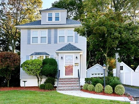 Beautifully maintained 2 1 2 story colonial in the most sought after neighborhood in West Norwood. Near highly rated school, child care, churches and parks. 1st floor: LR, formal dining room, orig. oak fl., MEIK with custom hardwood cabinetry, quartz countertops, stone backsplash, GE Cafe appliances, 1 2 bath and family room which opens to private back deck with natural gas hook up BBQ, brick patio, and park like setting. 1 car detached garage with newly built matching shed. 2nd floor master suite w hardwood floor plus 2 bedrooms and main bath, stairs to full unfinished attic. Central air, gas heat, generator, partially finished basement with playroom office, 400 btl. temp-control wine cellar, laundry room, central station smoke co alarm system. This home is a classic!
