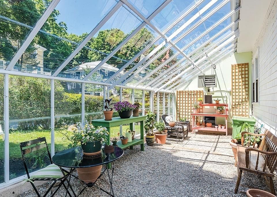 Charming three-bedroom residence in the heart of Newton Centre on a pretty tree-line street. Beautiful corner lot with a wonderful green house. There is an adjoining living and dining room with abundance of windows allowing for natural sunlight, and the dining room has a handsome fireplace with a mantel and a built-in china cabinet. Fantastic renovation of kitchen, open and spacious, with stainless steel appliances and a built-in banquette. Off the kitchen is also a pantry with a fabulous recycling area. Bathrooms updated a few years ago. Three good-sized bedrooms on second floor with potential to make a master bedroom en suite with master bathroom on third floor. Inviting side yard with direct views of the garden house. Detached one-car garage with two driveway spaces. Prime location to the Centre with all its amenities including public transportation.