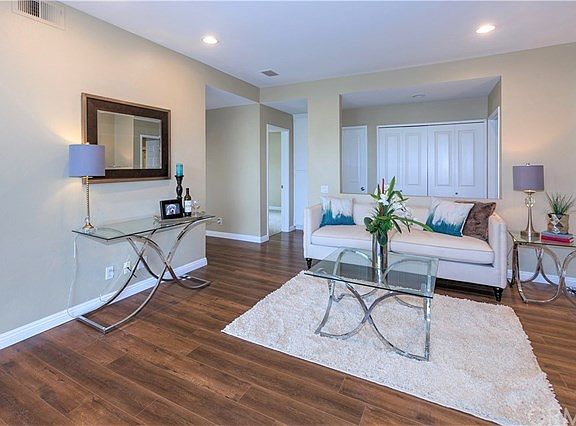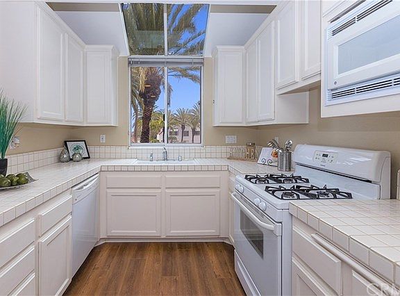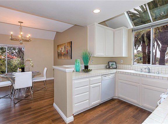 Located in the Prestigious and Ocean Close Community of ENCANTAMAR in Dana Point, you will find a rare, SINGLE LEVEL home only two steps to your front door from the street level! LOWEST PRICED 2 bedroom condo with 2 CAR GARAGE in Dana Point. This beautiful 2 BED, 2 BATH includes a 2 CAR DETACHED GARAGE plus a private balcony (twice the size of others) with added storage. This spacious, and immaculate home is a well laid out floor plan and features laminate flooring in the main living areas. It is bright and super light and has an over all wonderful feel and charm! This home has a fireplace in the living room, inside laundry, walk-in closet in the Master Bedroom suite plus a large shower with dual sinks. Encantamar features a beautifully renovated ocean view pool heated year round, spa, clubhouse and private gym. It feels like living a resort! The community has monthly pool parties with a wine and cheese happy hour. Close to Dana Point Harbor, Southern California's most gorgeous beaches, and walking distance to Ocean Ranch Neighborhood Shopping with theaters, restaurants and every convenience you desire.