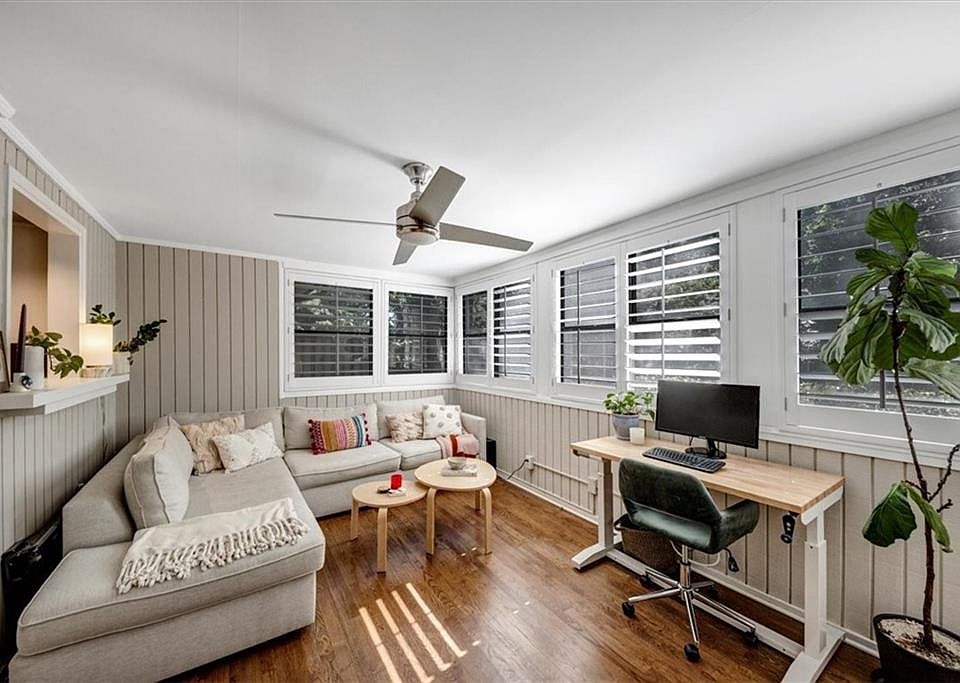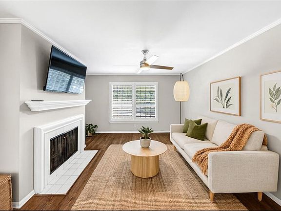 Renovated Flat in Gated Buckhead Neighborhood! This beautifully updated two-bedroom, two-bath flat combines charm and modern convenience. Inside, you’ll find real hardwood floors, crown molding, and four-inch plantation shutters throughout. The spacious living room features a fireplace, ceiling fans, and barn door closets for a touch of character. Both bathrooms have been renovated with new tile, frameless glass shower doors, upgraded lighting, and raised vanities with granite counters. The kitchen is a chef’s delight, offering granite countertops, white cabinetry, subway tile backsplash, an LG appliance suite and a pass-through to the sunroom. All appliances remain, including the LG refrigerator, range, microwave, and dishwasher, washer/dryer combo unit. The sunroom is the perfect spot to relax with a serene, wooded view. LaRue sports its own pool and clubhouse just steps away. Beyond that, Cross Creek is a gated community offering resort-style amenities inluding: an18-hole par-3 golf course with pro shop, 3 swimming pools, 4 tennis courts plus pickleball, Gym (for an optional membership $35/month,) On-site restaurant & bar, scenic, walkable roads throughout the property. Cross Creek is ideally located in the heart of Buckhead, minutes from the Buckhead Business District, Midtown and Downtown. Just 15 minutes to the airport with easy access to I-75, I-85, and GA 400. Zoned for top-rated Morris-Brandon Elementary School. Monthly HOA includes: water, sewer & trash, roof, landscaping, building maintenance, 24-hr guard gate attendant, pools & tennis. Golf is $10/round for residents.