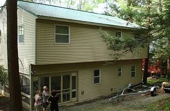 Level walk to Lake Wallenpaupack from your lakefront home! This home built in 1957 has been updated, rebuilt from basement foundation upward, now three modern baths, modern kitchen, two huge bedrooms, a possible fifth bedroom or den/office, hardwood floors main level, tile baths, a 268 sq ft screened porch, a 12x8 front deck, PLUS a quiet cove for your boat. SEE NOW! This one will NOT last!
