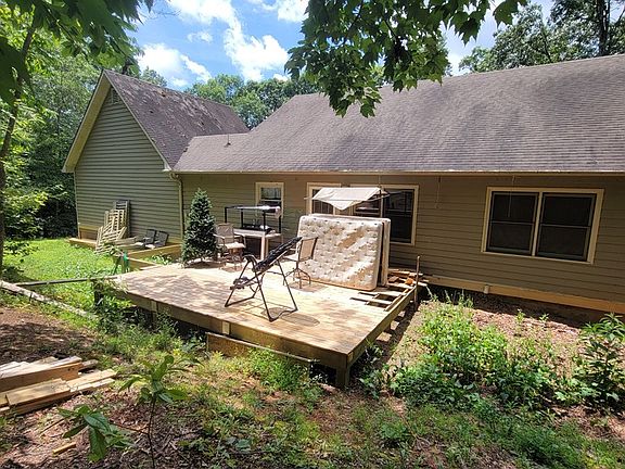 It is difficult to find a good home in this price range. Take you! 2 car garage, vaulted living room ceiling, wood burning fireplace, tile bathroom floor, hardwood in LR, kitchen, dining area. Spacious kitchen. Deck was in process of being built at back of home; not finished. Short drive to downtown Ellijay, Don't let this deal slip through your fingers; bring an offer.