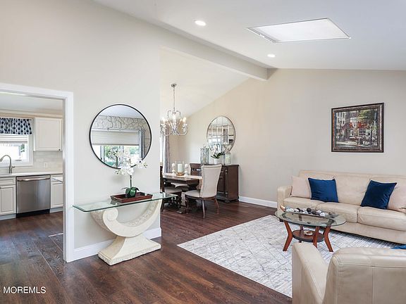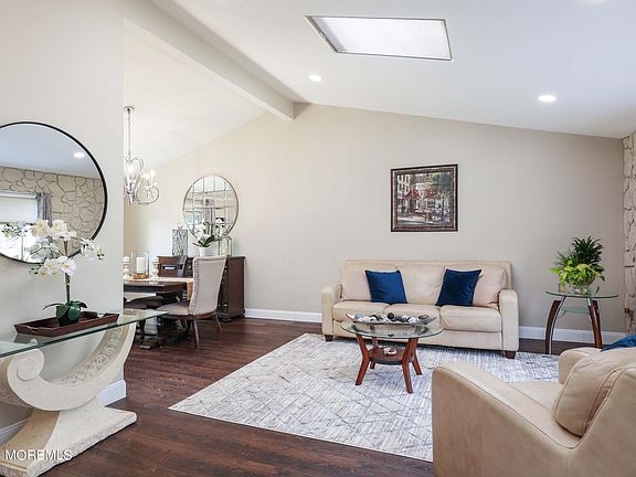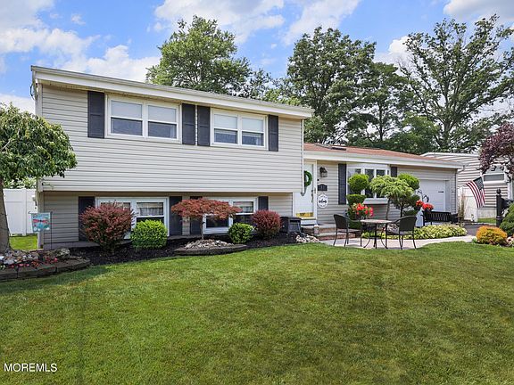 Absolutely gorgeous four-bedroom two full bath home is now available in highly sought after Fleetwood Park. From the moment you pull up to this impressive home you will be delighted with the lush landscaping, double driveway and beautiful walkway. A decorator's dream with cathedral ceilings, upgraded flooring and skylights. Lovely kitchen with plenty of white cabinetry, quartz counters, stainless appliances and breakfast island. Spacious Living room, Family room and open dining room for holiday gatherings. New Furnace, Central Air & HWH in 2022. Updated siding & windows. French slider leads to expanded & upgraded patio overlooking awesome fenced in yard terrific for entertaining. Commuters delight with easy access to all forms of NYC transportation and top-rated Hazlet swim & Tennis club.