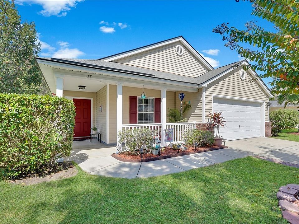 Move-in ready in a convenient Bluffton location! This one-story 3 Bedroom, 2 Bathroom home is located in the popular Hidden Lakes community. A short golf cart, walk, or bike ride away from the heart of Old Town Bluffton & the promenade, where you will find galleries, shops, restaurants, and more! This home has an open floor plan with vaulted great room ceilings. Recent renovations include the roof and updated HVAC. 2-car garage. Relax on the screened-in porch overlooking the fenced-in yard, making the most of your outdoor space. Hidden Lakes has a community pool and playground.