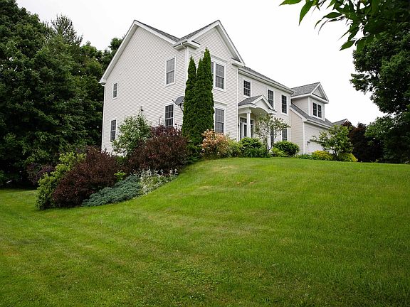 Welcome home to The Ledges in Milton. This spacious 4-bedroom colonial with 9’ceilings, and grand staircase has an open floor plan with lots of natural light. The kitchen with cherry cabinets, granite countertops, stainless steel appliances, and plenty of cabinet space, looks out to the private backyard and deck. Enjoy the open flow between the eat in kitchen and comfortable living room with gas fire place. A butlers pantry is located off the kitchen and dining room. Hard-wood floors flow throughout the first floor. Upstairs are 4 bedrooms, and a generously sized bonus room. The master bedroom has one walk-in closet and one regular. The master bathroom is spacious with double vanity sinks, and Garden tub. The bedroom with French doors can be used as an office or small bedroom. The walkout basement is a large finished room with a mini kitchen and a full bathroom. The room is suitable for an Au Pair to live, or family to enjoy. The unfinished basement has plenty of storage space. A newer HVAC and roof. HVAC is a duel fuel system. York propane furnace and BOSCH heat pump. Heat pump saves energy on heating and cooling. Central air conditioning. The home is central vacuum ready. Also included is a storage shed located under the back deck. On the school bus route, stops in front of home. The location is incredibly convenient, just minutes from I-89, 20 minutes to downtown Burlington, and 20 minutes to St. Albans. A wonderful family neighborhood.