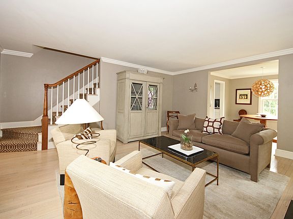 Sasco Hill Area Jewel! Charming three bedroom residence, beautifully appointed, on sought after cul de sac. Living room with gas fireplace, dining room overlooking gardens, sunroom with vaulted ceiling and french doors to large lounging terrace, kitchen with dining area. Spectacular property showcasing many specimen plantings and perennial gardens, and an eye catching fountain.