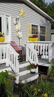 Sparkling, 1994 vintage doublewide in great condition. Nice kitchen with good cabinet space. Spacious livingroom, 2 bedrooms have walk in closets. Many updates include newer kitchen appliances, updated baths, roof and sky lites, Bryant 90+ efficientcy furnace, hot water tank, expanded front deck with trex decking and screened porch. Beautifully landscaped. Mint condition, shows pride of ownership! Virginia Homes serial # VA-224D-48-Z-13983-VH