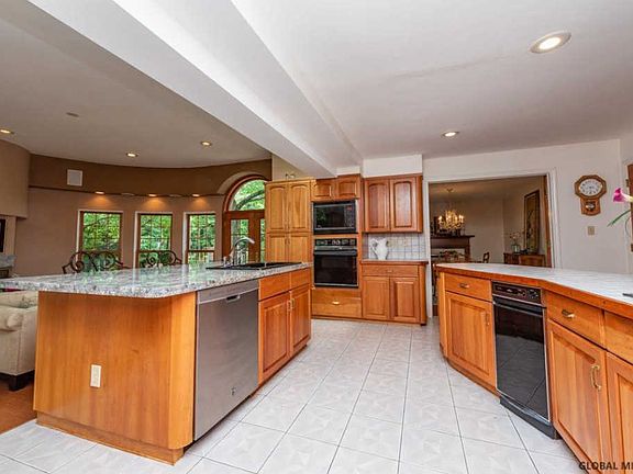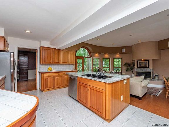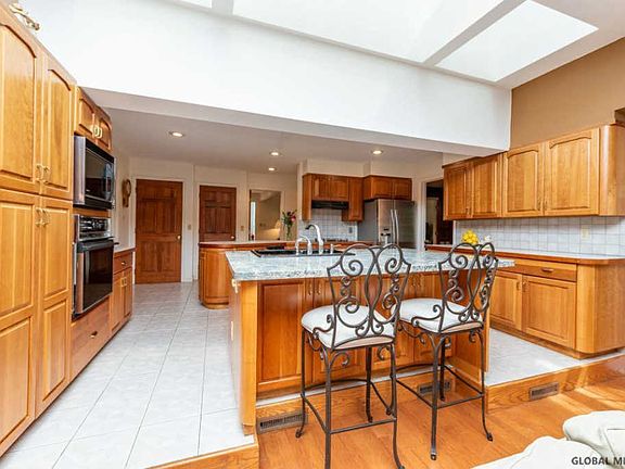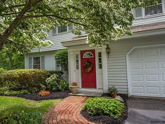 Gorgeous BRAND NEW ROOF on this RARE architect re-designed 4 bed/2 & half bath home by Kittner in desirable Kenholm Gardens, Delmar. Timeless custom cherry kitchen w/oversized granite island, and an absolutely delightful 'round room' flooded with natural light from floor to ceiling windows & 2 sets of curved french doors plus a stunning curved fireplace w/granite hearth. Backyard oasis where you can enjoy the tranquility of the patio or entertain in style on the large deck. Dining rm fireplace adds ambience to occasions. Master suite w/walk in closet & bath rm. Rec rm in basement. 2 NEW dual zone furnaces. NEW fridge & dishwasher. HW floors. NEST thermostat. Award winning Elsmere Elem. *chandelier excl. Central A/C upstairs only.