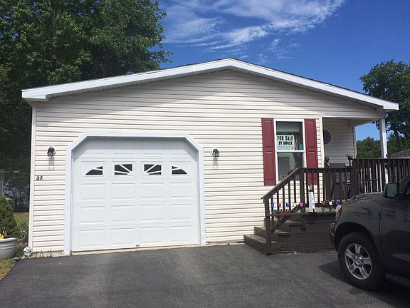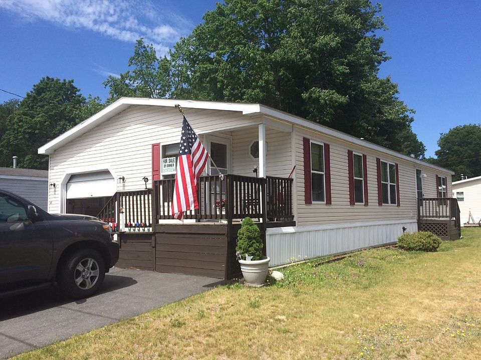 2005 28'X62' Pine Grove Manufactured Home with attached single car garage on beautifully landscaped lot. Well maintained home. Central air-conditioning. Gas heat and range. Cathedral ceilings. Laminated flooring in living room, dining room, and hall. Carpeting in bedrooms. Large master bedroom with garden tub and walk-in shower with two seats. Asking price $85,900. Lot rent $435 per month.