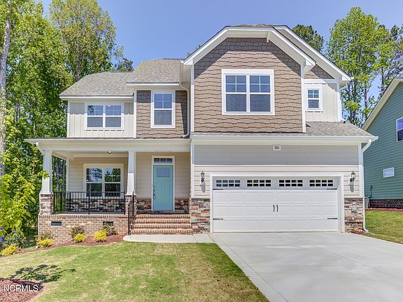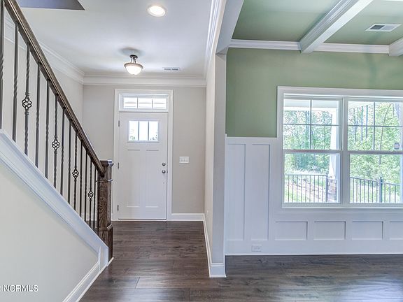 Welcome home to The Kendleton, built by Caviness & Cates in The Sanctuary at Forest Sound. This 3-story home includes 5 bedrooms, 3.5 baths and plenty of extra space throughout. Walk inside and you will notice the elegant dining room with coffered ceilings and picture frame wainscoting. The kitchen with breakfast area and center island, will feature ''Frost White'' quartz countertops, backsplash in ''Daphne White'', white shaker cabinets, walk-in pantry with wood shelving, butler pantry, and stainless-steel appliances, including a natural gas range. Flowing seamlessly from the kitchen, is the great room with natural gas fireplace and Carolina Room that provides easy access to the covered porch with grill patio overlooking the backyard. Completing the first floor is a half bath and built-in coat station making the perfect landing zone for backpacks and shoes in the garage entry. The second floor features the primary suite with tray ceiling and crown molding, along with 2 large walk-in closets with wood shelving. The primary bathroom includes a tile shower with bench, double vanities, linen closet and private water closet. You will find 3 additional spacious bedrooms, the laundry room and a full bath with double vanity on the second floor. Be sure not to miss the 3rd floor! The 5th bedroom, along with a full bath and bonus room can be found here, making it the perfect retreat for guests! Additional features in this home include LVP flooring and crown molding throughout the first floor living areas, oak tread stairs, epoxy garage floor, tankless natural gas hot water heater and gas HVAC. The Sanctuary at Forest Sound is centrally located in the heart of Hampstead. 15 minutes to Wilmington or Surf City/Topsail and just 1 mile off the Intracoastal Waterway. Future proposed amenity includes a boat storage area. Home is under construction. All options, finishes and completion dates are subject to change.