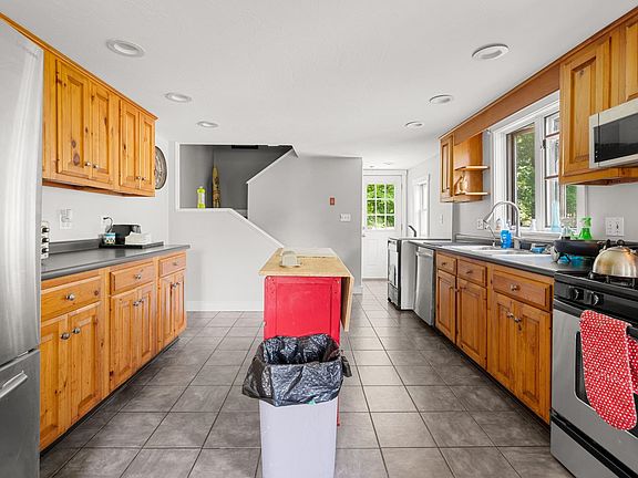 Chichester Town Center - Antique cape with 3 bedrooms and 1 and a half baths. Eat-in kitchen with plenty of cabinets and counter space. Nice big living room with a vaulted ceiling exposing the beautiful old beams. Pellet stove in the living room. Detached 2 car garage. Ideal location with 1+ acres, great yards for play and/or gardens, and 374' of road frontage. Property is newly zoned as "Town Center" with permitted uses. Please see documents for list of permitted uses. Property is being sold "as is".