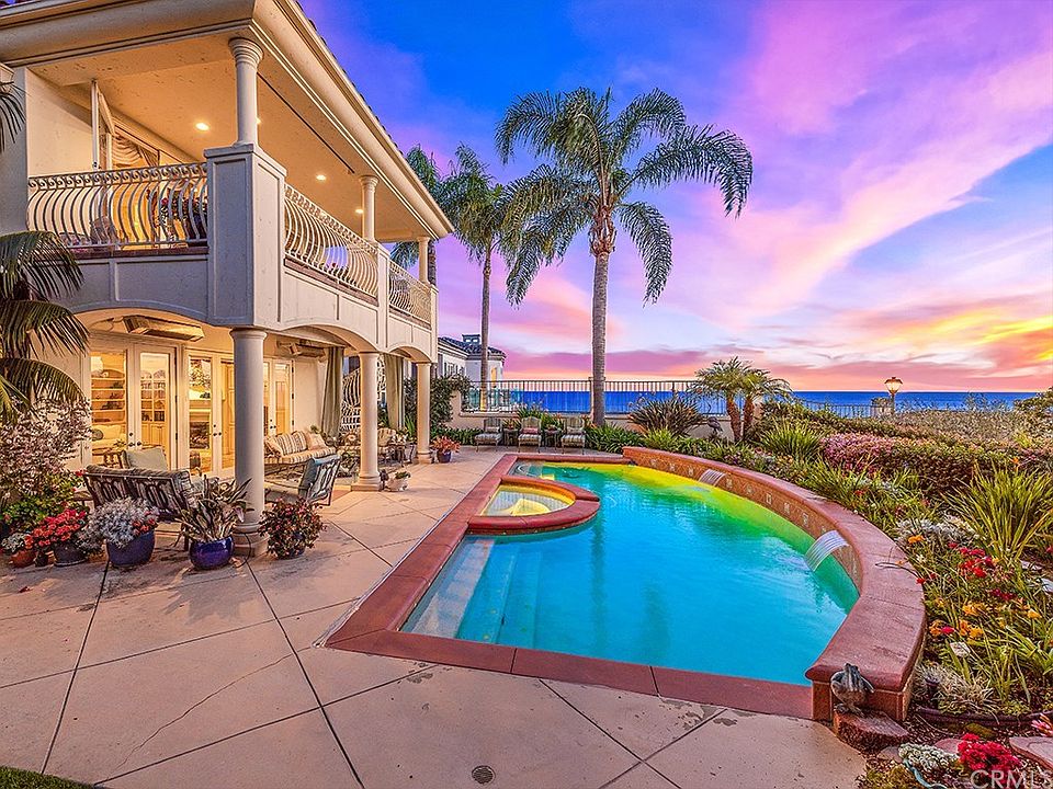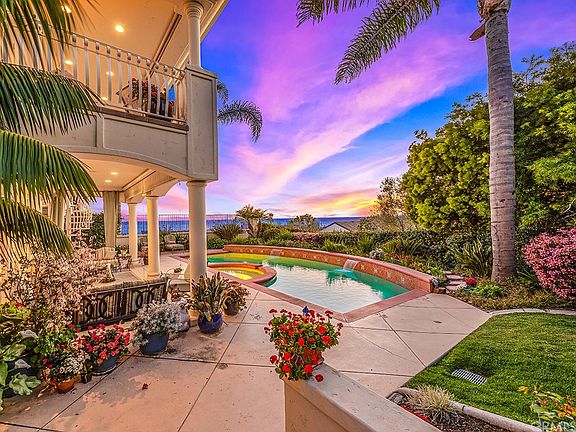 PREMIER HILLTOP LOCATION IN THE GUARD GATED COMMUNITY OF SEA POINTE ESTATES, THIS EXQUISITE CUSTOM HOME DELIVERS PANORAMIC VIEWS OF THE PACIFIC OCEAN, DP HARBOR AND CATALINA ISLAND. TAKING FULL ADVANTAGE OF ITS IDYLLIC LOCATION, THIS ENTERTAINING RESIDENCE IS PERCHED ON AN OVERSIZED LOT WITH 4,100 SQ FT OF LIVING SPACE, A LUXURIOUS INTERIOR WITH SUPERIOR ATTENTION TO DETAIL AND NUMEROUS OUTDOOR LIVING AREAS WITH BUILT-IN GAS HEATERS, A LUSH COURTYARD, A FULL OUTDOOR KITCHEN AND A SECLUDED POOL/SPA. THE FORMAL AREAS INCLUDE A GRAND FOYER WITH A WROUGHT-IRON STAIRCASE AND DINING ROOM WITH PICTURE WINDOWS. THE FAMILY ROOM HAS A FIREPLACE, WET BAR W/ CUSTOM CABINETRY, PLUS THREE SETS OF FRENCH DOORS THAT OPEN TO THE POOL. THE SPACIOUS KITCHEN HAS GRANITE COUNTERS, A LARGE CENTER ISLAND W/ DUAL SINKS. PREMIUM APPLIANCES WHICH INCLUDE CHEFS STOVE, BUILT-IN REFRIGERATOR AND A SERVICE COUNTER WITH INTEGRATED SEATING. THE WALK IN PANTRY & SECOND STORAGE AREA OFF THE KITCHEN PROVIDE AMPLE STORAGE. THE MASTER SUITE HAS A LARGE COVERED DECK WITH AWE-INSPIRING VIEWS, THE MASTER BA HAS A HUGE WALK-IN CLOSET AND SEPARATE SHOWER. DESIGNED TO ACCOMMODATE A VARIETY OF NEEDS, THIS HOME INCLUDES AN OVERSIZED GUEST ROOM WITH A VIEW TO THE ROSE GARDEN, UPDATED BA'S, AN UPSTAIRS ON-SUITE BR, A LARGE LIBRARY WITH A PRIVATE 1/2 BA & OCEAN VIEW DECK. THERE IS A 4 CAR GARAGE AS WELL. ENJOY ALL THAT SEA POINTE ESTATES HAS TO OFFER, INCLUDING RESORT STYLE POOL, SPA, TENNIS COURTS AND CLUBHOUSE.