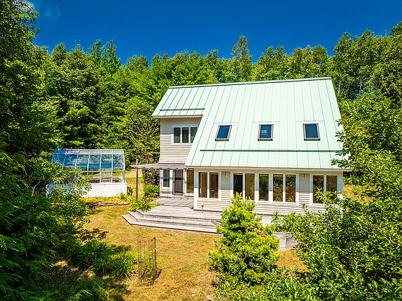 Beautiful private 3 bedroom, 2 bath Contemporary home just 2 miles from Lincolnville Center and 10 minutes from Camden. First floor features an open kitchen, dining and living space, bedroom, sunroom, laundry room and full bath. Spacious kitchen with breakfast bar, the living and dining room have high ceilings and lots of natural light. Second floor has the primary bedroom with walk-in closet and a full bath and the third bedroom. Other features include: a two car attached garage, mudroom a green house for all your gardening needs and a generator. The home sits on a 2.1 acre lot and includes an additional separate abutting 2.1 acre lot. Option to purchase two other abutting lots for $75,000 each.