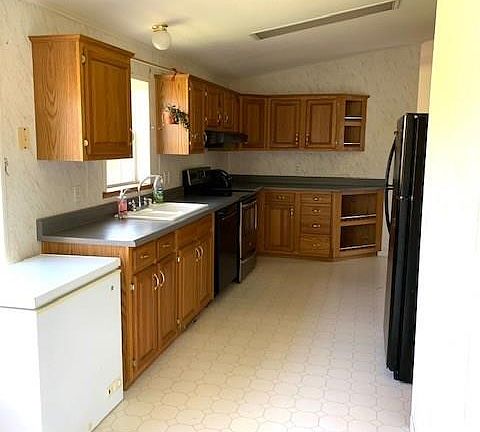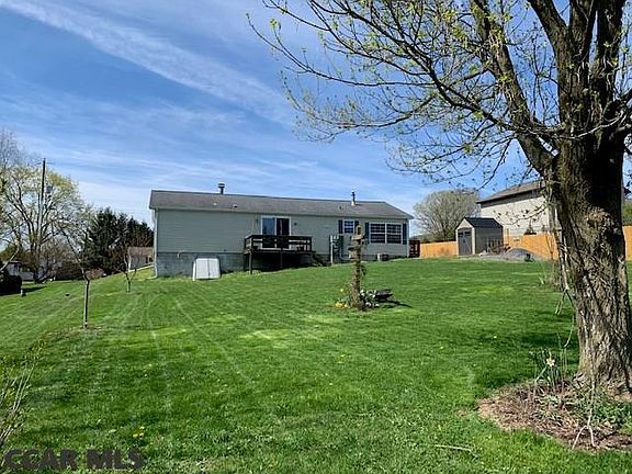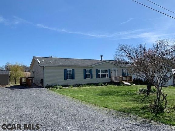 Don't miss this cozy country home with flowers in bloom! Providing the ease of one floor living, an open concept living room/dining area with high ceilings and a gas fireplace. This property has 3 bedrooms and 2 bathrooms total, the master bedroom having its own bathroom! Enjoy the peaceful views from the dining room table, or the rear deck. This manufactured home offers central air, forced hot air, main level laundry and a full unfinished basement with the possibility to finish and add additional living space. Situated on .34 acres with a partially fenced in yard and located on a private lane. (Property is being sold in as-is condition and could use just a touch of TLC)