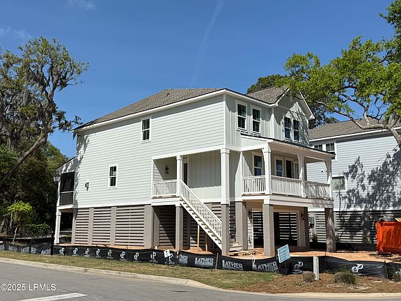 Welcome to The Tybee, a luxurious 3 bedroom, 2.5 bath coastal paradise. This beautiful elevated home exudes sophistication and offers a range of exquisite features. With a 3 car drive-under garage and full front porch, it presents a captivating Lowcountry curb appeal. Additionally, the double rear screened porches allow you to savor the backyard views throughout the year from the living area and the primary suite on the second floor.