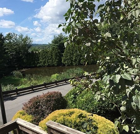 Many upgrades great views charming unit. large Master Suite with separate room/sitting area, skylights and 3 Closets (1 walk-in included) updates include: hardwood floors, re-faced fireplaces Kitchen and Bathrooms cabinets, remodeled bathrooms and 2 fireplaces. Updated Kitchen has Granite counter tops! New windows 1 y old A/C and water boiler. Beautiful corner unit with views of Pond and wooded area! Bonus room Office/ FamRoom