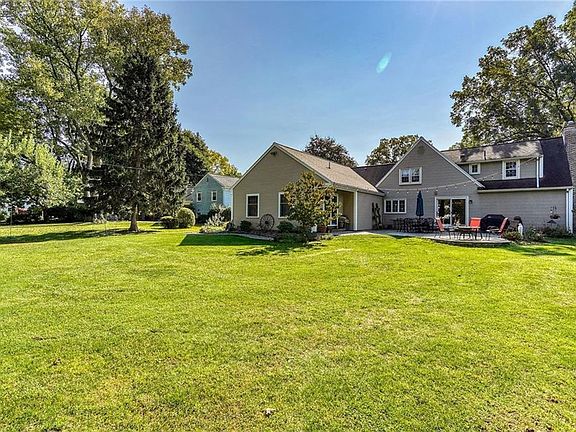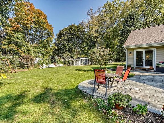 Wonderful Cape on beautiful lot! Step into an bright foyer with reading nook for the kids. Beautiful updated kitchen with island (stays) opens to family room. Walk-in pantry with charming glass door Large dining area w/ sliding doors to huge patio perfect for entertaining. Spacious living room with fireplace and hardwood floors. Huge master suite addition on first floor with vaulted ceilings and private sitting area, gorgeous bathroom complete with tiled walk-in shower and granite countertop. A first floor office that is perfect for that home office or classroom. This addition would make great in-law space. First floor laundry. Upstairs, three nice sized bedrooms and remodeled full bath. Basement is used as extra space for schooling and/or hanging out. Wait until you see this amazing yard with huge patio, beautifully landscaped, large shed with a chicken coop (will remove if wanted) All appliances included! Make this impressive home yours!! Furnace, AC, 200 amp service 2016, invisible fencing, newer vinyl windows, Playset neg. Light fixture in foyer is excluded. All showings must comply with COVID-19 NYSAR guidelines. Masks required for all showings. Shoes removed.**