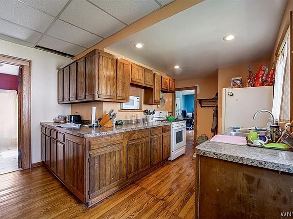 Where else can you find an expansive farmhouse, set on 10+ acres, in a Village setting with a stream running through it? This home was zoned as a Triplex, but is currently set up a a 2 family home/2nd floor in-law suite. The main house features natural woodwork through the 1st floor with an open layout, 3 bedrooms, a full bathroom and studio/office. The 2nd floor, that was the 3rd apartment, is now used as 2 bedrooms and a full bathroom. Walk out back of the office onto the refurbished deck. The 2nd floor apartment is a 1 bedroom with a potential 2nd bedroom. full kitchen and living room. The expansive yard, where the three car garage with attached shed can be found, leads to the rear, lower acreage. This is wooded, private and bisected by the Lime Lake Outlet Stream. Showings start immediately and offers will be reviewed as received. Also listed as a Multi Family Home: MLS# B1412762. 2022-06-29