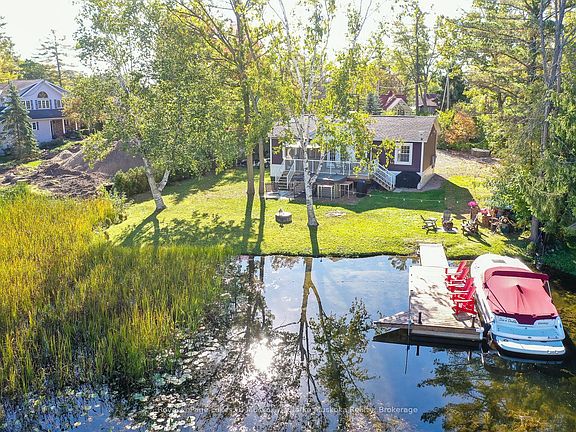 Welcome to your lakeside haven on beautiful Little Lake, just one lock from Georgian Bay. Perfectly situated within walking distance to shops, restaurants, the beach, and the boat launch, this charming waterfront home offers the ideal blend of convenience and year-round comfort. Town water and sewer, regular road maintenance, and garbage collection make ownership effortless. Enjoy breathtaking views from the expansive deck overlooking 100 feet of pristine shoreline, complete with a private dock, firepit area, and relaxing swim spa. Inside, the 1,000 sq. ft. open-concept layout features a bright and stylish kitchen with all-new appliances including a gas stove flowing into an inviting living space with new hardwood floors throughout. The primary suite includes a walk-in closet, ensuite, and convenient laundry tower, while two additional bedrooms and a full bath provide plenty of room for family or guests. A survey and site plan for an addition offer exciting possibilities for the future. Whether you're seeking a peaceful weekend getaway or a full-time waterfront residence, this tranquil retreat invites you to start living your best lakeside life.
