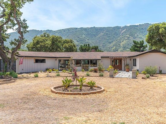 Location is key! Situated in one of Carmel Valley's finest neighborhoods, this ranch-style home offers breathtaking views of Garland Park on 1.82 acres. Nestled at the end of a lane shared with just one other home, this property enjoys a secluded and peaceful setting, offering unparalleled privacy. Inside, vaulted ceilings and an open concept design create a spacious feel, complemented by spectacular mountain views visible from nearly every window. 15 fixture credits are available, enhancing the potential for expanding the current home or constructing your dream residence. Recent upgrades such as a remodeled kitchen with solid wood cabinets, concrete farm sink, and marble countertops, along with new windows, front entry design, deck, and new landscaping, make this property a must-see