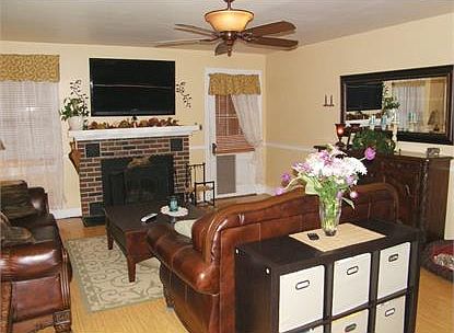 Attractive Country Cape Cod w/brick FP, deck off kitchen, screened enclosed porch, 1st flr Master Bedroom, wooded lot and beautiful flowering perennial shrubs. Possible office/den on 2nd floor. Upgraded kitchen, newer appliances, granite counter top, cabinets, Pergo flooring.