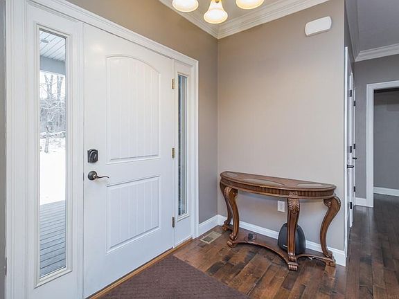 Multiple offers, best and final with attached signed multiple offer form by 6 pm 1-13-2020. Get ready to experience luxury one level living on 2.5 Acres in convenient country location! Wonderful custom home with striking stone entry detail features 9 ft ceilings throughout, hardwood floors, crown moldings and central air! Contemporary open floor plan showcases a large Great Room with slider to Sun Deck, Formal Dining Area and upscale Cook's Kitchen with granite counters, eye catching recessed and pendant lighting and "over the top" huge centerpiece central island! Private Master Bedroom suite has amazing Bath featuring dual his and her vanity cabinetry and real walk in closet room! Second Bedroom wing has two additional Bedrooms, 2nd Full Bath, also with beautiful cabinetry, and convenient Laundry Room. For future potential living, full daylight lower level with high ceilings, rough in for 3rd Bath and slider to finished patio. Bonus 3 car Garage with lots of driveway parking!
