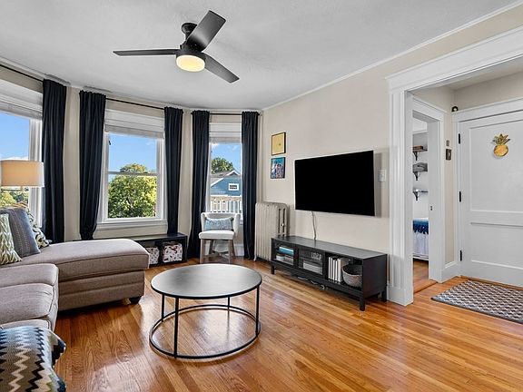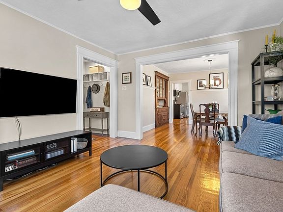 High among the treetops sits this updated and lovingly maintained 2-3 bedroom condo, located within a popular Roslindale neighborhood. From the moment you step into the unit you're greeted by brilliant natural light & original details. Off the entrance foyer you'll find the 3rd bedroom, currently used as a home office/guest room with access to the front porch. Enjoy distant city views while sipping your morning coffee or evening beverage. The living room opens to an elegant dining room, with an oversized built-in hutch & lovely picture rail. You'll love cooking in the gorgeous, updated kitchen w/ island, quartz counters and walk-in pantry. The two main bedrooms are off the hallway, separated by the tastefully renovated bathroom. Both rooms have double closets for ample storage. Don't forget the rear covered porch, shared yard and private, raised garden bed! Exclusive laundry & storage in basement. Easy access to Commuter Rail, local restaurants, shops, Roslindale Village & Arboretum!