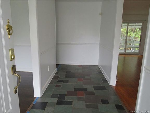 Welcome to incredible Must See Spacious Sun-Filled In-Law Ranch home with separate entrance/exit Bright and Sunny Fully Air Conditioned Freshly painted one-level home with lots of charm and space. You can't help but notice the charm of the vertical wood siding which highlight the home architectural features and which can be easily cleaned along with a newer roof. There's a circular driveway for your convenience that leads to a concrete walkway for EZ_ACCESS to the home. Entering, notice the slate tiled foyer that leads to a large sun-filled fireplaced living room with gleaming hardwood floors and a slider with access to a balcony overlooking a large private backyard. There's a spacious dining room that boast hardwood floors chair rails, adjacent to a large tiled eat-in Kitchen with lots of cabinet space and charm. The freshly painted sun-filled primary bedroom boast hardwood floors double closet and a half bath. The second bedroom which is also spacious comes with hardwood floors and with large closets space. Comfortable Lower level ads an additional 1400 square footage of finished area with lots of space. Working from home? There's a fireplace sun- filled room in the lower level that's perfect for an office or even a bedroom. There's also a dining area with laminated floor along with a full bath. Lots of option in this Ranch that's conveniently located to the Town Green, Library, Restaurants, Biking, Hiking, and Golfing. This is the space that buyers need