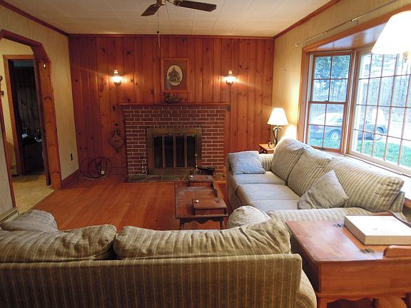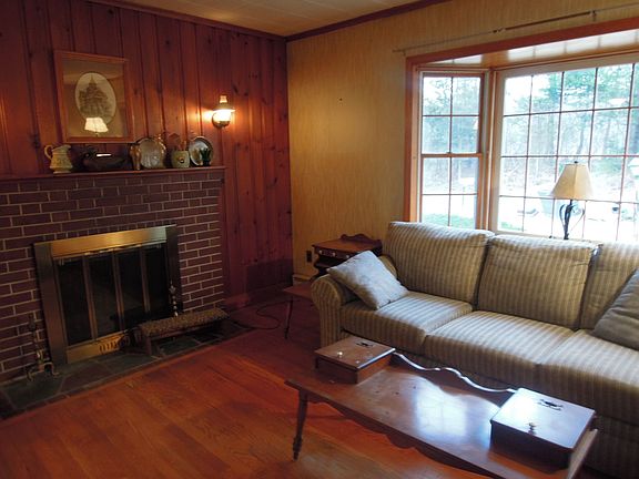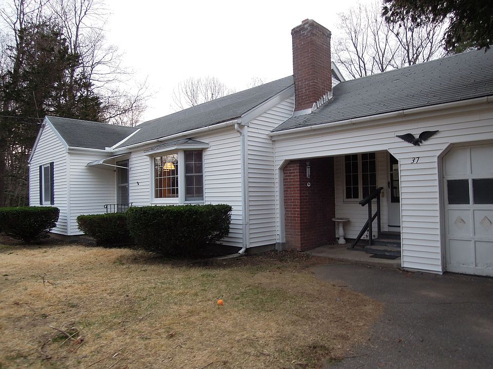 Call 413-427-5931 for private showing. This adorable and newly updated ranch on Mountain Road is located in the quiet and peaceful "Rock Valley" area of West Holyoke. This excellent location allows you to feel the privacy and benefits of being out in the country, yet convenient to everything. 3 minutes from entrance to 91 South, and 5 minutes to 91 North. Get to great shopping and restaurants at the Holyoke Mall within 5 minutes. Bedrooms: 2 beds Bathrooms: 1 bath Single Family: 1,073 sq ft Lot: 33,541 sq ft Year Built:1965 1 car garage * Eat-in Country Cottage style kitchen with new flooring, sink, faucet & counters. Open to dining area with great views of private wooded yard. * Nice sized den, office or guest room full of windows. * Charming and comfortable living room with fireplace & mantle. Large bay window brings in the sunlight. * Brand new electrical - 100 amp service installed. * Brand new energy efficient replacement windows. * Gleaming hardwood floors. Oak in LR & beautiful Southern Pine in bedrooms. Newly sanded & refinished. * New sheet rocked ceilings and lighting fixtures. * Like new, freshly painted walls in June 2013. * Good sized closets and attic storage space. * Deep one car connected garage & large tractor, patio furniture or yard equipment storage area in back. * Bright and sunny above-grade basement with full size windows, high ceilings, built in bar, work room with built-in work benches and laundry room. Has huge potential to expand living space, perfect set-up for in law suite, large bedroom, media room or man cave. Walk out door leads to nice private back yard with pond behind. * Newer Burnam Furnace. Washer & Dryer stays.