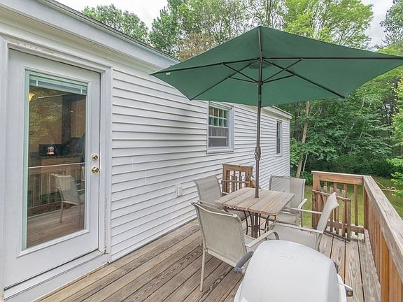 Fantastic Rock Valley/West Holyoke location is the host for this charming ranch with attached garage. As you enter the home you are greeted with a heated sun room/ home office which currently has first floor laundry. The bright & spacious eat-in kitchen features plenty of cabinets, large pantry, 2 built in hutches and atrium door to deck. Enjoy your coffee or cold beverage overlooking the wooded back yard & lots of privacy! The large living room has wood floors, a fireplace & large bow window. Both bedrooms have double closets & wood floors, the bathroom has tub surround & attractive vessel style sink. The lower level has a finished room with built-in counter/bar area and additional space that could be a family room with 8.5 foot ceilings (APO). You will feel surrounded by nature with over 3/4 of an acre. This move-in ready home also has vinyl siding, replacement windows, a wall safe & additional storage/shed under home with exterior access.