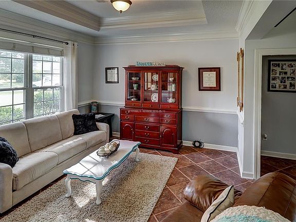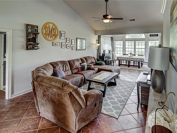 SEE 3D Walkthrough Virtual Tour - Single story home w/an open floor plan, high ceilings & tile floors throughout main living area. Enjoy stunning golf views & outdoor living w/a screen porch and extended patio. The kitchen offers SS appliances, Granite tops, breakfast rm, pantry, plenty of counter & cabinet space. The Master Suite has his & her closets, double vanity, separate shower & garden tub. The split bedroom floor plan allows nice privacy w/2 guest bedrooms. There is crown molding, many cathedral ceilings, plant shelves and tray ceilings throughout. Outstanding Eagles Pointe Amenities!