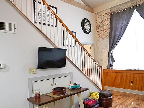 Beautiful condominium in Gettysburg borough within walking distance to downtown and convenient to shopping and restaurants. Lots of natural light shines through the oversized windows to highlight this open interior with cathedral ceilings and an upper-level balcony. Main level bedroom with huge walk-in closet and laundry area. Second story loft suitable for 2nd bedroom or office area. Condo is completely furnished and includes all appliances, including washer/dryer combo, furniture. Reasonable $150/mo condo fee includes all exterior and common area maintenance. Reserved parking space; sizeable, dedicated storage area available in basement.
