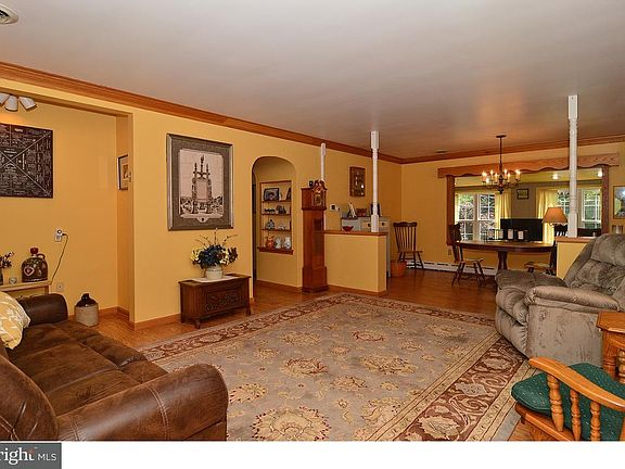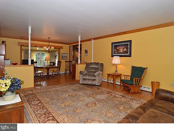 In the heart of Hamburg is a sweet home with a serene setting. The beautiful landscaping in the front yard welcomes you to a cozy porch with an awning. Upon entering the home you will be pleased with the open concept of this mid century home. High quality laminate flooring throughout the common area gives unity to the space. Columns divide the living room and dining room with a new kitchen with an island plus new appliances that will remain with the home. An enclosed porch has been opened into the rest of the space with a gas fireplace which provides a great area for relaxing in the winter and watch the snow from the large windows. The master suite is situated on the one side of the common area and features a master bath with walk in tile shower and tile floor. On the other side of the common area are 2 nice size bedrooms and updated bathroom. The lower level features a family room with gas fireplace and wet bar for entertaining. There is a 1/2 bath and large laundry area too. Plenty of storage is provided both in the lower level and a walk up attic. Attached to the home is a tandem garage that was used for a train platform, so it is drywalled nicely with heat so it could be an additional room or the small wall could be removed and the garage is still usable. BUT, did I mention there is an oversized 2 car pole garage in the back yard and a "He shed and She shed" for additional storage. The back yard setting is very relaxing with the sound of running water from the stream behind this property. No flood insurance needed. There is also an additional yard to the side of the home for space to enjoy in the summer. Everything has been done for you in this home, including newer central air