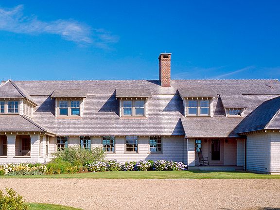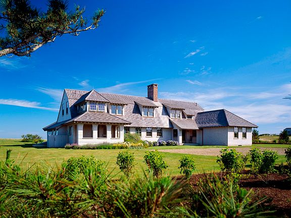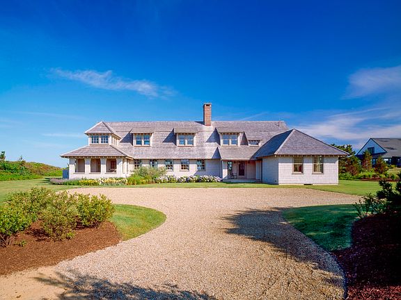 An extraordinary waterfront estate on Chappaquiddick complete with 140-ft deepwater dock, 3-bedroom guesthouse, garage barn, and the unique opportunity to own your own 9-hole “links” golf course next door. The home was designed by award-winning Boston architecture firm Albert-Righter-Tittman and built by Doyle Construction - a "dream team" for the owners whose goal was to achieve a superb finished product. It is just a few minutes away but a world apart from the hustle and bustle of Edgartown village. Since completion the property has been featured in numerous magazine articles and coffee table books. The main house pays homage to the illustrious camps that dotted this shoreline a hundred years ago - grand yet welcoming. This modern interpretation allows most areas of the home to enjoy views of Nantucket Sound. Everywhere there are pleasing details such as fir floors, locust posts that support the 900 sq ft porch, and shiplap interior. The home was built to the very highest standards. There are 5 bedrooms in the main house including a primary bedroom suite on the second floor with 180-degree water views. Beneath the impeccable cosmetic details are mechanical systems that will allow any occupant to live there with all creature comforts. The basement houses a gym and steam/sauna. The home is ideal for entertaining, with its vast great room and dining table that seats 18 people. The interior spaces spill easily to the outside where the lawn stretches to the private beach which in turn yields to Nantucket Sound glistening to the horizon. The setting also provides the ideal vantage point to watch regattas featuring some of the world's finest yachts, extraordinary sunsets, and of course the legendary Edgartown July 4th firework display. These are stellar swimming waters to plunge into right off your own beach, or, if the mood takes you, somersault into from one of the two swimming platforms at the end of your own private dock. The 140-ft dock has a draft of 6 to 8 ft. In addition there are two moorings. The 990 sq ft guesthouse is privately situated and as well as a full kitchen and living area there are 3 comfortable bedrooms. The 2200 sq ft garage barn with workshop has radiant heated floors and a half bath. The house is being sold with all furniture included. There is also the opportunity to purchase the neighboring Royal & Ancient Chappaquiddick Links, a Martha's Vineyard institution.