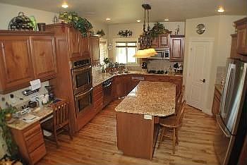 On almost an acre, this house offers a lot as well! The kitchen has attractive granite countertops, spacious island and breakfast bar, cherry wood cabinets and stainless steel appliances. The master suite is conveniently and privately situated on the main floor. Enjoy its elegant tiled, walk-in shower! There's a large bonus room to spread out as well as an over-sized 3-car garage with a pull-through third-bay for even more room. There's pressurized irrigation, a 220 hot tub circuit and plumbed line for gas BBQ.