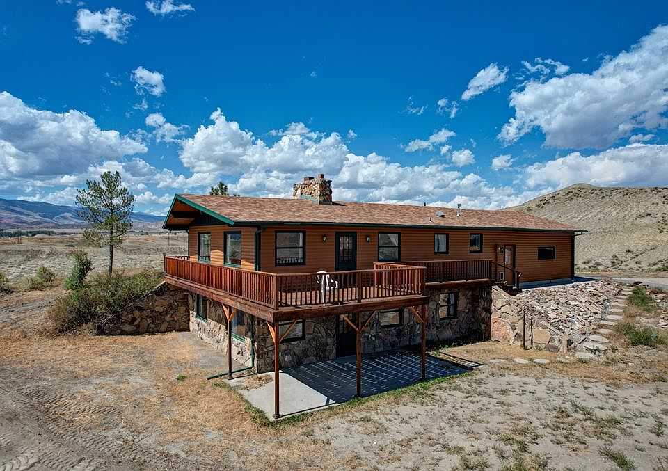 Very secluded home with fantastic elevated views of mountains surrounding Cody. Adjoins a Section of BuRec land to the North for recreation. Irrigation water to property through HOA water system. Brand new exterior paint, newer roof, newer HVAC system. 1344 SF outbuilding has shop 3 bay equipment storage and detached 2 car garage. All buildings have log siding freshly painted. Outhouse with vault for additional storage. Long private driveway adds to the seclusion this property provides. HOA Water storage tank on corner of property was freshly painted to match house and shop building. Big entry deck freshly stained. Great elevated mountain views of everything surrounding Cody. Perimeter fenced with irrigation water through the HOA. House has brand new front and back rain gutters also.