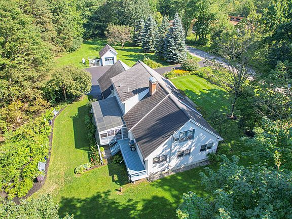 Envision a warm and cozy evening by the two-sided wood-burning fireplace flanking the living room and dining room or mixing up your favorite dishes in the spacious kitchen with lots of counterspace and cabinet storage! ***The HIGHLIGHT of the home is the impressive 16' x 29' GREAT ROOM, perfect for relaxing and entertaining. ***. The main level also features a first-floor primary suite, large closets, and a convenient laundry area. *** On a bright and sunny day, you'll love the ENCLOSED SUNROOM with wood floors, offering a serene space to relax and enjoy wildlife throughout the year. ***
