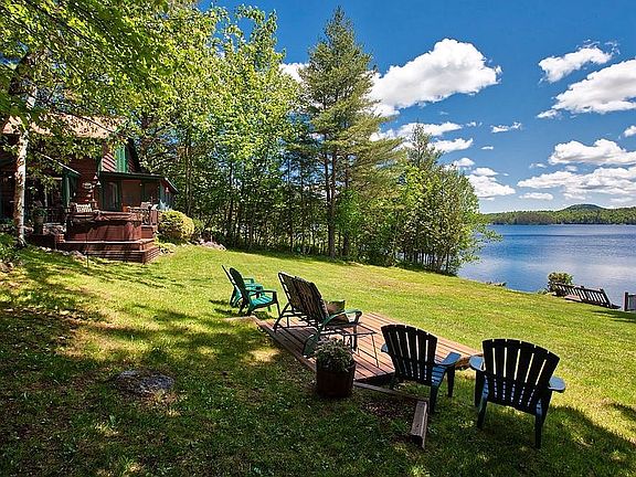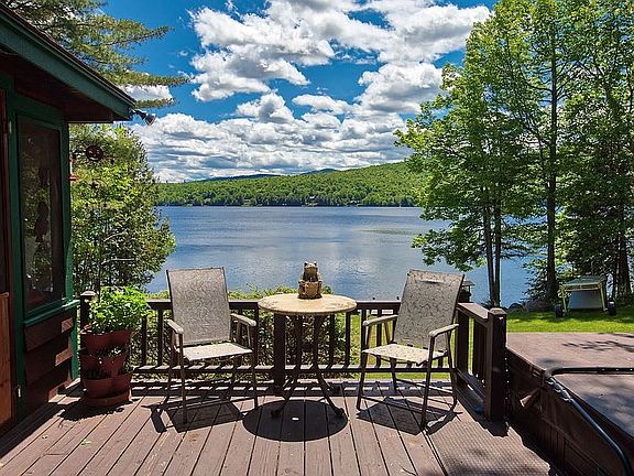 Immaculate waterfront home on crystal clear Silver Lake. Approximately 30 minutes from Lake Placid and 15 minutes to Whiteface Mountain, with 1.15 acres ,125 feet of waterfront and spectacular views. Silver Lake is located in Clinton County, New York in the Adirondack park ,Silver Lake mountain and the hamlet of Hawkeye ,New York . It is 3.5 miles long and has 13 miles of shore line, much of it protected state land/ forever wild . A very unique and private Lake . Loons sounding off daily. Very well designed and constructed, the main home has 2 bedrooms , 2 bath ,the oversized master bedroom suite overlooks the lake,bonus room ,an attached 2 car garage ,an additional sleeping cottage and separate "bunk house", and a hot tub on the deck with lake views! Kids/adults very own private play park with tree house ,zip line and gardens a bound. Large beautiful manicured yard with fire pit . This home in being offered totally furnished, in turnkey condition for the buyers convenience. Shore front has a aluminum Floe dock system on wheels. Canoe and life vest also included .Just had it professionally stained and painted this season and new septic system . Come enjoy the Lake living in the Adirondacks . A MUST SEE ! MOTIVATED SELLERS ! Come take a look you won’t be disappointed . Will pay buyers agent commission. LISTED by OWNER Call 518 -637-4473