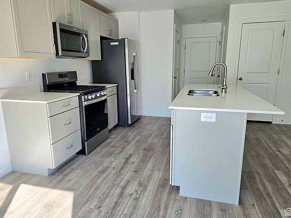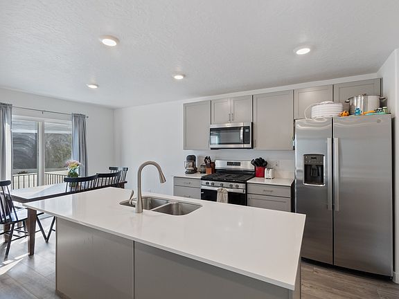 SELLER TO CONTRIBUTE $4k towards buyer paid closing costs. This mid unit townhome is located in the Sun Sage Meadows community in Grantsville. This thoughtfully designed home features very spacious bedrooms with generous closets. It includes 3 Bedrooms, 2.5 bath, and 2-Car Garage, fully fenced backyard, and unfinished basement for extra storage. Relax on your patio approx. 9' deep x 24' wide for family BBQs! Open concept living on the main floor. The most sought-after upgrades are included in this listed home, such as white cabinets, stainless steel appliances with a gas range, dishwasher, and microwave, white quartz countertops in the kitchen and in the upstairs bathrooms! We've included laminate wood floor in the kitchen, dining, entry, and extended through the family area. Square footage figures are provided as a courtesy estimate only. Buyer is advised to obtain an independent measurement.