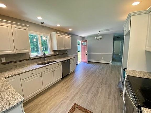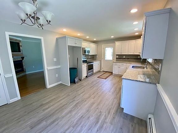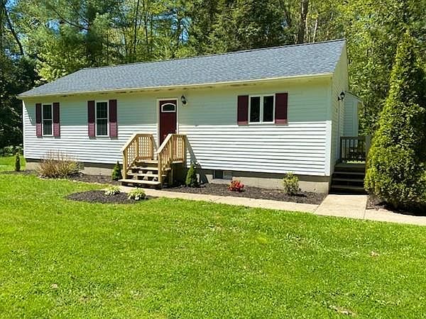 Just in time for summer! This sweet 3 bedroom ranch has been lovingly renovated with just the right amount of character. The sun splashed eat-in kitchen has white cabinets, a beautiful back splash, granite countertops and new stainless steel appliances. The living room boasts a custom gas fireplace with gorgeous woodwork and lighted display. The full bath with laundry features a jacuzzi tub, new vanity and plenty of extra storage. Three generous bedrooms with fresh paint, ceiling fans and new flooring throughout. Recent roof and 200 amp electrical service and whole house water filtration system. Basement is ready to be finished and offers high ceiling and wide open spaces. Paved driveway and walk way. This property is located in the Cranberry Meadow Pond community and there is beach access approx 1/2 mile away. Hiking and walking trails nearby! Passing title 5.