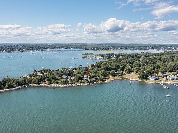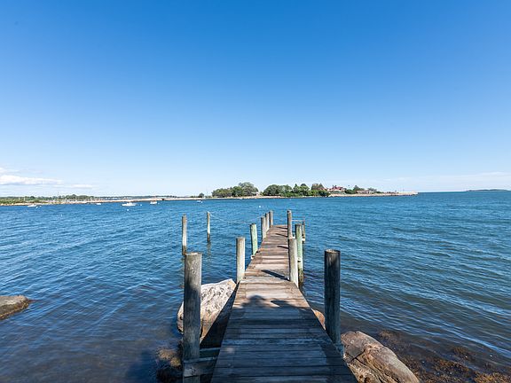 Magnificent Direct Waterfront with Unobstructed Water views and Private Deep Water Dock. All nestled on 1.24 Acres with 201' of Direct Water Front. Rare and Unique setting with views to Fishers Island Sound, Enders Island, Stonington and beyond. The drive from the road entrance rises and winds gracefully past tall pine trees and mature plantings to the 28' elevation where the existing home structure is located. This exceptional parcel offers a once-in-a-lifetime canvas for your custom-designed coastal retreat. Enjoy your private fixed dock with appx. 4 1/2 ' of water at low tide, and appx. 6' at high tide. Mean Low Tide in the immediate adjacent water is 7'. This property is located in a very private sector of Mason's Island, southwest of the fresh water pond. This existing house should be removed and rebuilt to your specifications. There is also a 2 bay garage structure at the entrance to this property. This incomparable property has been owned by only two families in the past 103 years. Awaken each morning to sweeping water views, spend your days sailing, boating, kayaking or simply basking in the serenity of this private island sanctuary, and hear the breaking waves. With year-round access to the beauty and recreation of the water, this is more than a homesite - it's a dream come true.