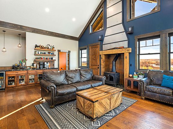 Welcome to your one of a kind Montana dream home -- This one truly has it all! Nestled within 95 acres is a custom Silverstone built four bedroom, three bathroom home with gorgeous details throughout. The main level features a gourmet kitchen, primary suite, laundry, office and second bedroom. The basement has a cozy family room, two more bedrooms, a bathroom, and a home gym. Attached is a heated three car garage with a dog run and RV parking. The home is just the beginning of this property -- the outdoor features are extensive! With multiple outbuildings, a pond, and mountain views the options are endless! At the edge of the property is a 900 sq. foot shop with attached one bedroom/one bathroom living quarters and 14 ft. door. The large 5 acre pond sits just past the driveway. With a separate driveway on the far edge of the property is a newly constructed outbuilding. You'll find comfort, convenience and endless opportunities in the property! See supplement. Listed by Katie Carvell Welcome to your one of a kind Montana dream home -- This one truly has it all! Nestled within 95 acres is a custom Silverstone built four bedroom, three bathroom home with gorgeous details throughout. As you walk in you'll be greeted by vaulted ceilings in your open concept living area. You'll find a gourmet kitchen with a six burner gas range, leathered granite counters and elegant alder cabinets. In the vaulted living room is a floor to ceiling metal fireplace surround. The dining room backdrop has a reclaimed barn wood wall as well as an expansive dry bar. On the main level you will also find a luxurious primary suite with a walk in closet and amazing views and a door right out to the hot tub! Laundry, an office and bedroom with attached bathroom round out the main floor amenities. Downstairs you'll find a cozy family room, home gym, utilities and two more bedrooms. Don't forget the secret hangout and climbing wall. It's a must see! ! Attached is a heated three car garage with a dog run and RV parking. The home is just the beginning of this property -- the outdoor features are extensive! With multiple outbuildings, a pond and mountain views the options are endless! At the edge of the property is a 900 sq. foot shop with attached one bedroom/one bathroom living quarters and 14 ft. door. A perfect opportunity for a guest house or rental income. The large 5 acre pond sits just past the circular driveway. With a small boat house and private dock there are endless recreational options! With a separate driveway on the far edge of the property is a newly constructed outbuilding. You'll find comfort, convenience and endless opportunities in the property!