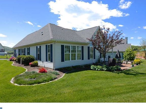 Meticulously kept home in Meadowview Farms 55+ adult community. The current owners had this house built with features that includes 9ft ceilings throughout, hardwood floor in foyer, a cathedral ceiling in the family room and a deep trey ceiling in master bedroom. The kitchen features beautiful 42 inch cabinets and upgraded extra deep ceramic kitchen sink, tiled backsplash, Italian tiled flooring and much much more. Since moving in, the list of upgrades continue with custom tiled bathrooms, Hunter ceiling fans and a Tradewinds storm door, custom fitted blinds, etc., etc. As you can imagine the outside of the house is equally upgraded with a cozy covered porch that leads to a gorgeous professionally landscaped yard that includes a 12 X 22' stone paver patio, Belgium Block edge flower beds and walls . The owner recently had a Lennox Hi Eff A/C installed and is including a wall mounted Panasonic 42' HDTV and a 17 cu ft. Samsung side by side refrigerator .The active community clubhouse offers a well equip gym, weekly activities and periodic dinners and/or bar/bq's .This is life at its best; easy to show ,come see for yourself . Note, Oley has a large portion of farms in conservation and it is my understanding that all of the adjoining farms are enrolled in this program .