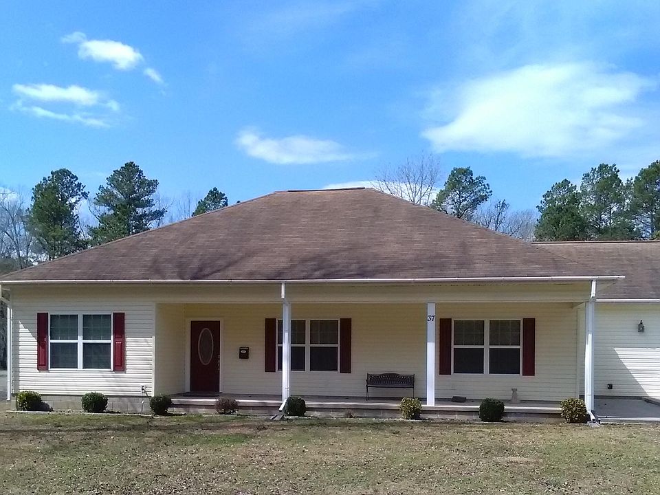 Open floor plan. Guest bedrooms are split from master. Private master bath with double sinks. The main bedroom has an attached large walk-in closet. There is a two car garage and large front porch. Ceiling fans is bedrooms and great room. Kitchen features quartz countertops a refrigerator, microwave, electric stove and dishwasher Country living with woods across the street. Tile floors in all rooms except for bedrooms. Nice quite neighborhood. Home is located in a nice quite road with woods across the road. Located close to I-30 for easy access. This house has an open floor plan with tile floors. The main bedroom has a large walk-in closet with new LVP flooring. Tenant pays all utilities except for trash. There is a is a two car garage with driveway. No parking in yard or road. Tenant is responsible for lawn care. NO SMOKING, NO SECTION 8. Small dogs accepted on a case by case basis. There is a $350. non refundable pet deposit. NO CATS. Yard is not fenced. Each adult 18 and over will need to complete an application. Credit, background and income will be required. The cost of the application is $25.00 per person 18 and over. No credit scores under 600 will be accepted. Renters insurance required.