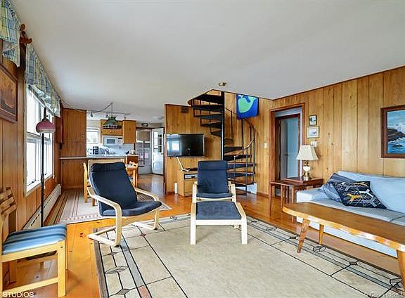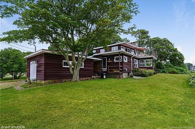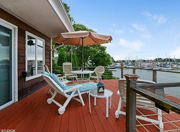 Very special cottage with dynamic water views of Fisher's Island Sound. Quiet shoreline neighborhood in Noank. The house overlooks Spicer Marina and Groton Long Point shoreline. The house has both a first floor and second floor deck. The main floor living area has hardwood floors, beautiful windows, a fireplace, two bedrooms and a full bath. The upper level has a large bedroom that could also serve as a family room There is a second fireplace and sliders to a spacious deck. Beautiful sunrises and sunsets. There is an attached garage, and room with a shower for beach days. This is a compact, adorable summer home or year round living.