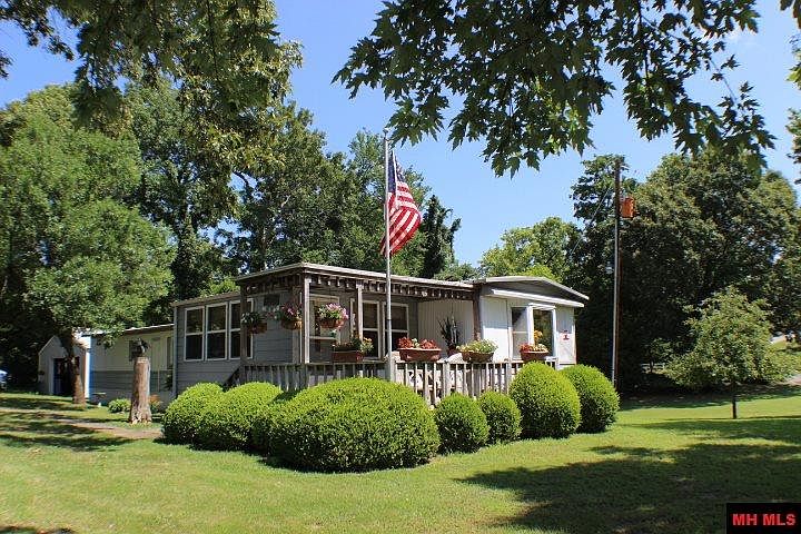Ideally located close to Bull Shoals Lake: Affordable 2 bedroom, 1 bath mobile home with open floor plan plus additional den. Enjoy the wildlife from your partial covered deck. Mobile has a roof over with replacement windows & newer heat pump. If you need space there are 2 utility buildings and a 24 x 26 detached garage with concrete slab & electric.