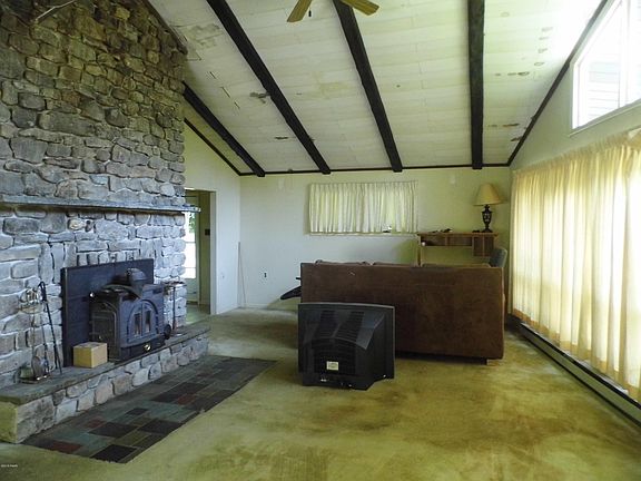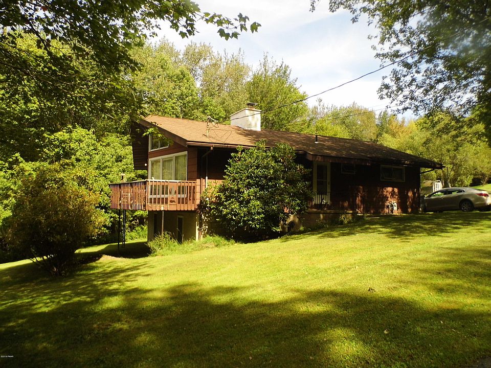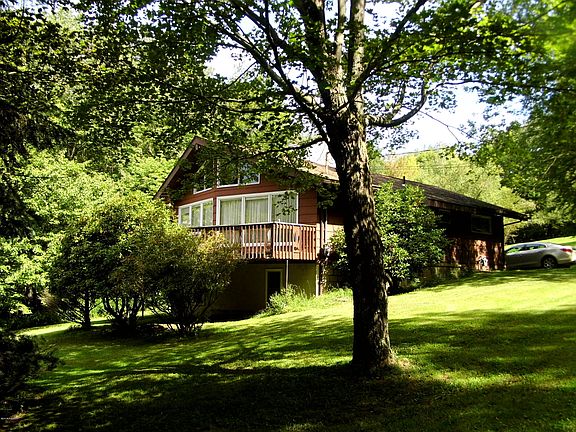 PRIVATE PARK LIKE SETTING-CONVENIENT TO TOWN- Home is in need of some TLC, but just imagine the finished product. Home features 2 bedrooms and 2 full baths, lots of natural lighting and a large entertaining deck, floor to ceiling handsome stone fireplace in the living room and another stone fireplace in the lower level family room. Home however does need a new roof as there is water damage in the living room.