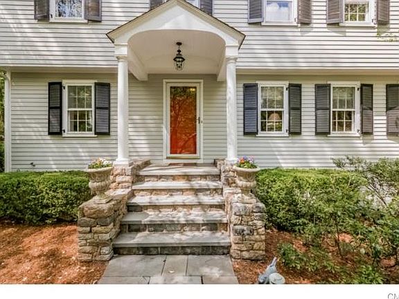 Looking for a colonial house on a terrific cul de sac in South Wilton? Look no more! This location is a commuter's dream just a few minutes to major highways and walking distance to Wilton Center. Updated nicely and set on a level lot, abutting beautiful Bradley Park - 82 acres of walking trails and lots of privacy with towering trees. This home offers CITY WATER with updates that include central A/C, new clapboard siding and insulation, elegant front portico with columns, expanded deck and screen porch, new stainless steel kitchen appliances, front yard irrigation system. Custom built-in cabinetry/shelves in several rooms, updated baths and nice size bedrooms on the 2nd floor. Sought after neighborhood!